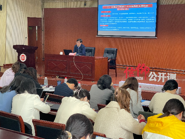 为深入学习宣传贯彻党的二十大精神,落实立德树人根本任务,4月26日下午,党委学生工作部组织全体辅导员、各学院青马指导教师、“新进社”成员近200人齐聚一堂,共同聆听华东师范大学终身教授、全国著名党建专家齐卫平主讲的题为“奋斗新时代新征程的思想指南和行动纲领--认真学习领会党的二十大精神”的“信仰公开课”。
