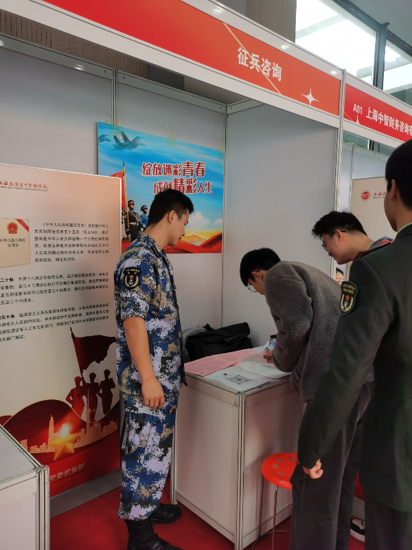 征兵宣传走进校园招聘会是我校深入开展大学生征兵动员工作的重要举措,不仅方便广大毕业生了解征兵政策,也促进认识毕业生参军入伍也是一种就业新渠道。活动当天,现场发放征兵宣传资料200余份,接受咨询100余人次,现场登记有参军入伍意愿大学生20余名。