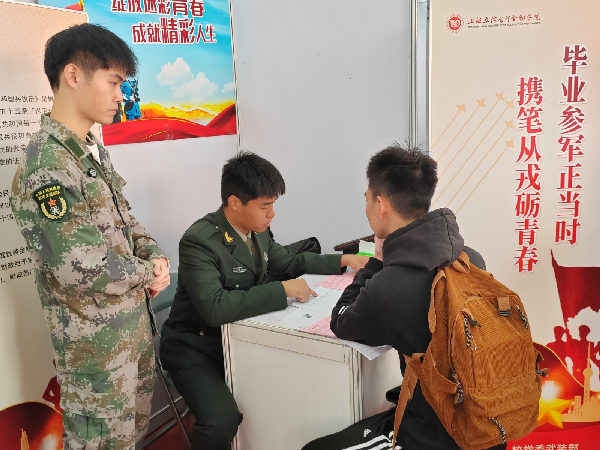 “我右眼轻微近视可以参军入伍吗?”“我想报名参军,现在有什么新政策吗?”“毕业生入伍,服役期满后可以选择继续留在部队吗?”近日,随着2024年春季应征报名即将开始,我校党委武装部早筹划、早部署,11月15日,利用学校2024届毕业生秋季校园招聘会契机,设立征兵宣传点开展毕业生征兵工作专项宣传。