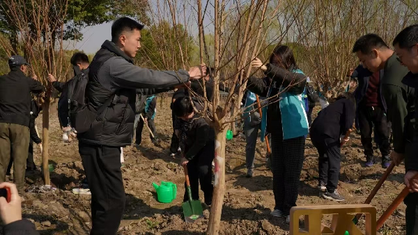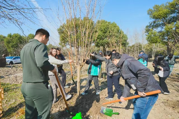 街道党工委书记姜山在致辞中回顾了十年间街道在经济发展、民生改善、社区建设等方面取得的显著成就,与会人员一同在“拾光林”种下象征希望的紫薇树苗。随后,随着发令枪响,2.8公里健步行活动火热开启,退伍大学生与街道工作人员、辖区居民、师生代表一起,迈着矫健的步伐,沿着公园的步道有序前行,大家精神抖擞、欢声笑语,共同探寻“上海之根 文明松江”的文化内涵。