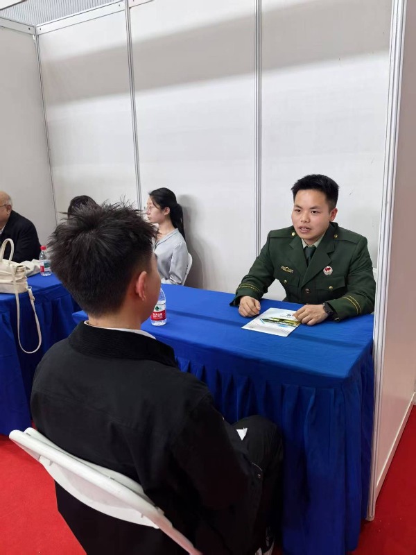 本次活动抓住招聘会毕业年级学生多、目标明确的特点,国旗班退伍大学生把握“参军即工作”理念,紧密结合自身经历,重点解析2025年度招录的时间节点、体格检查内容、优待保障机制及常见的职业发展路径,为每位前来咨询的学子提供精准的政策资讯。