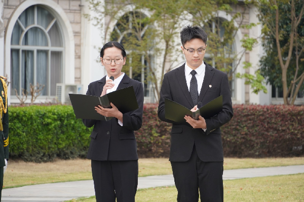 随后,会计学院“‘烽火’党史宣讲团”的学生骨干们,以深情地朗诵《信以立身承先志,诚以致远启新章》,追溯了潘序伦老校长非凡人生与不朽功绩。铿锵有力的誓言,是跨越时空的精神传承,彰显出新时代立信师生将缅怀之情转化为开拓创新、拼搏奋进的坚定决心。