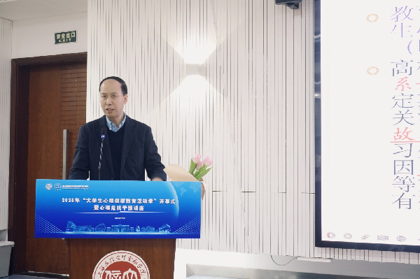 4月2日下午,以“潜心同行,筑梦未来”为主题的2025年心理健康教育活动季暨心理危机干预专题讲座在上川路校区学生活动中心101会议室举行。校党委副书记、副校长王军华出席开幕式,上海市教育科学研究院研究员杨彦平、学生处负责人、各二级学院学生工作负责人、心理健康教育与咨询中心专职咨询师、全体辅导员和心理委员代表参加了本次活动。