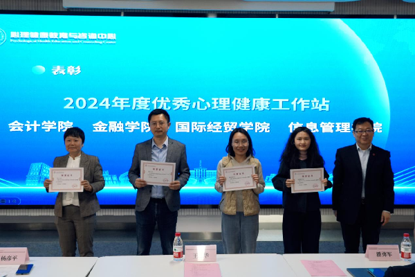 会上,会计学院、金融学院、国际经贸学院、信息管理学院心理健康工作站获得“学校优秀二级学院心理健康工作站”称号。
