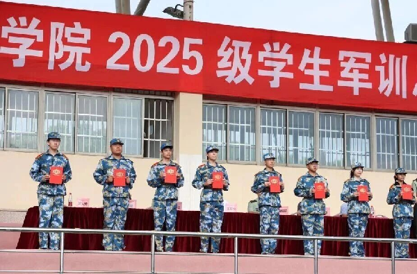 会上宣读了2025级学生军训先进集体和个人表彰决定,并为获奖代表颁发荣誉证书。计算机与人工智能学院杨桐、统计与数学学院周珍作为新生代表暨军训标兵发言,号召全体同学坚定理想信念,将“请党放心,强国有我”的青春誓言转化为追求卓越、勇担使命的实际行动。