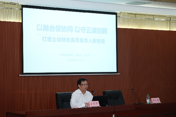 王军华以《以融合促协同 以守正谋创新——打造立信特色高质量育人新格局》为题发表讲话。他指出,学生工作要紧密围绕学校综合改革和教育教学审核评估两项重点任务,进一步凝聚育人共识,并就推动思想政治教育、成长服务与人才培养目标同向同行、协同发力,提出三点要求:一是要主动作为,从既定模式向交互融合转变,以“大思政”格局汇聚育人“大合力”。既要找准自身专业点、优势点,以更高站位、更广范围贯穿融入课堂育人主渠道;又要找准育人契合点、工作交汇点,以更深层次、更优效果推动形成整体贯通、和谐有序的协同育人机制。要加强与教学、科研、管理服务等各条线的协作,因事而化、因时而进、因势而新,成为连接各方育人力量的“传导点”。二是要敢为人先,从静态结构向动态连接转变,以“大教育”生态广建育人“大平台”。既要坚持思政“小课堂”和社会“大课堂”同向同行,敏锐洞察学生在学业、就业、心理等方面的新需求、新变化,形成“从实践出发,经由实践检验,达至理论创新”的螺旋式育人闭环;又要坚持知识传授与价值引领同频共振,深刻理解STEM教育对于跨学科融合与实践创新能力培养的战略意义,推动创新链、人才链与教育链深度融合。三是要系统推进,从思政体系向综合育人体系转变,以“学生成长为中心”构建育人“大体系”。既要积极探索构建多元主体参与、全过程持续性的学生发展评价体系,协同教师、导师、校友、家长及学生代表等多方力量;又要大力推动思想政治工作与学生管理服务深度融合,建好用好“一站式”学生社区,构筑更立体、更持续、更富生命力的“师生共育”关系。他寄语全体学生工作者:立信因你而强大,学生因你而成长,教育因你而温暖,勉励大家以责任与情怀投身育人事业,在变革中勇担使命、彰显价值.