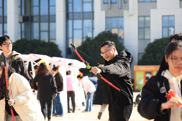 活动现场人气高涨。校党委常委、副院长陈加林走访各活动展位,认真听取学生组织者关于策划理念与实施细节的介绍,并积极参与射箭、投壶、抛绣球等互动项目。他高度肯定学生的自治能力,强调学生主导的活动更贴近校园生活、更能激发青春活力,学校将持续支持此类自主实践活动。