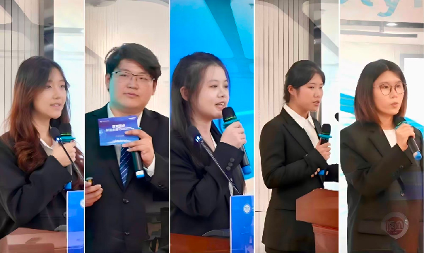 财税与公共管理学院田依灵、会计学院魏建昕、金融学院徐子幽、国际经贸学院肖俊华、金融科技学院洪诗盈等5名同学,依次上台交流分享了各自团队的学术研究成果。