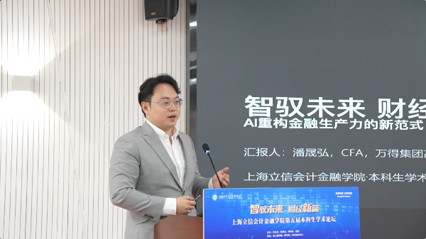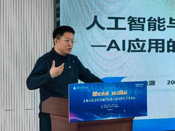 在主旨报告环节,汇付天下有限公司执行董事兼CFO金源以《人工智能与会计变革》为题,生动展示了AI在财务管理场景中的实践应用,描绘了财务数字员工的发展图景,鼓励同学们主动拥抱技术变革、善用智能技术赋能专业发展。万得信息技术股份有限公司高级分析师潘晟弘围绕AI重构金融生产力的新范式,系统阐述了AI技术的阶段性发展特征,分享了智能体(Agent)对金融数据分析、客户服务等工作流的重塑路径,并提出了适配AI时代的金融人才能力模型,为学子成长提供实践指引。我校金融科技学院副院长程宏深入解读了财经STEM教育的核心内涵,强调结构化认知力、数据理解与建模能力、工程化行动力是AI时代财经人才的核心竞争力,为学生们成长为行业“引领者”指明了实践路径。