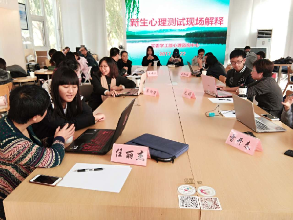 此次心理测量选用了16种人格因素量表、大学生心理健康量表、90项症状自评量表三种心理测量工具,测量在关注学生心理健康的同时,注重学生对自身性格的了解和完善。在历时五个小时的现场解释和咨询过程中,各学院的同学踊跃参加,纷纷前往现场打印测评结果,与专家进行现场交流。据统计,两校区共约400名新生接受了现场咨询。