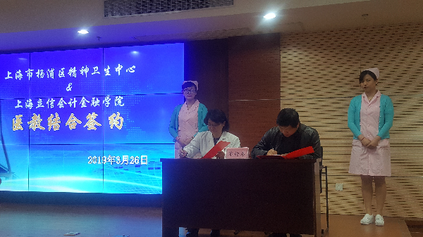 活动期间,王煜华副处长代表我校与杨浦区精神卫生中心院长屠一敏共同签署了“医教结合”项目合作协议书。